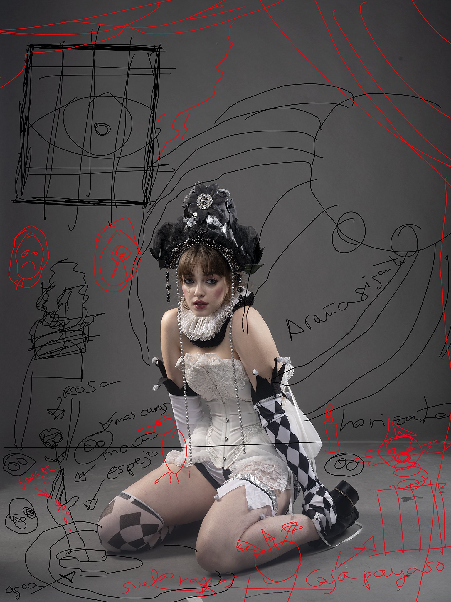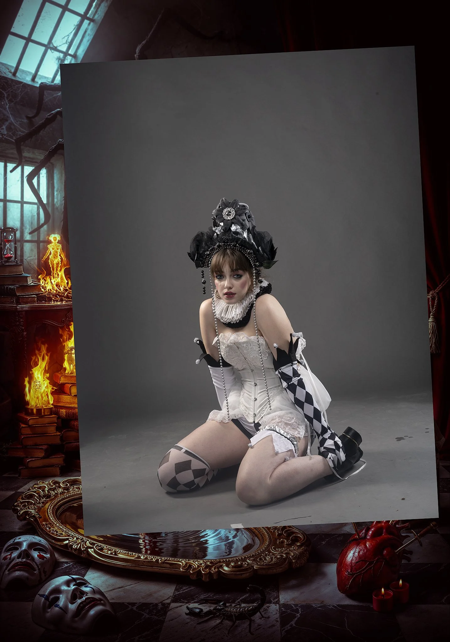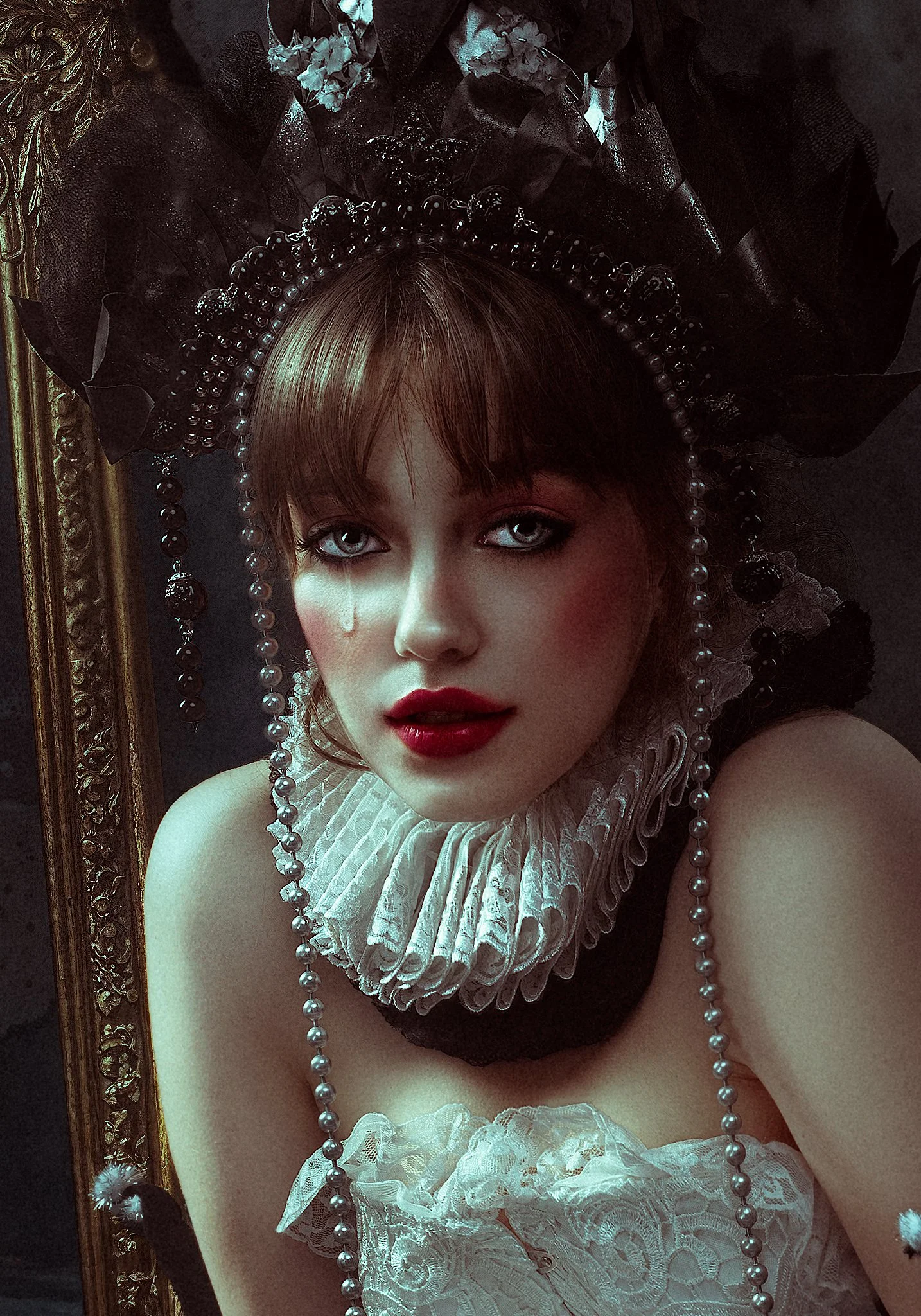 La Protagonista: No es solo una chica; es un pierrot, el arquetipo clásico de la melancolía, de la tristeza que se oculta tras una máscara (en este caso, su maquillaje). Su mirada perdida y su rosa solitaria nos hablan de una vulnerabilidad profunda.